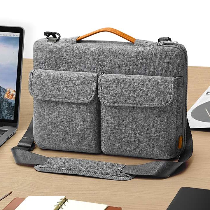 便利な取っ手付きで、複数のポケットを備えた実用的なパソコンケース。頑丈な生地とスタイリッシュなデザインが特徴で、ビジネスシーンに最適。ショルダーストラップも付属し、長時間の持ち運びも快適にサポート。大切なパソコンをしっかり守るこのケースがあれば、移動もスムーズに。どんなシーンでも活躍する頼れるアイテムです。