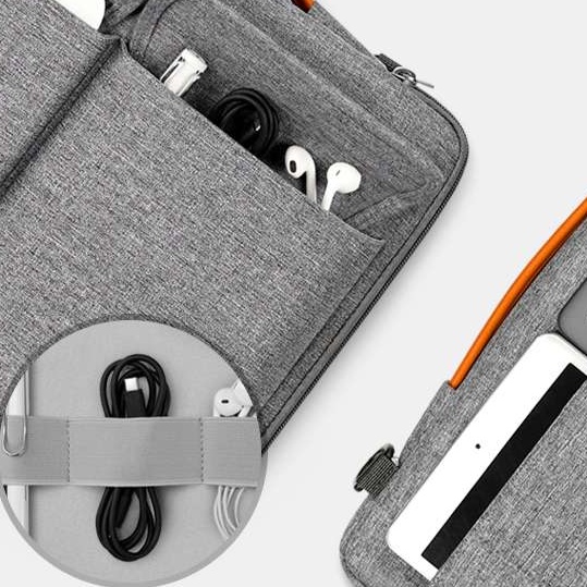 前面に2つの大きなポケットがあり、充電器やケーブルなどの小物をすっきり整理して収納できます。
