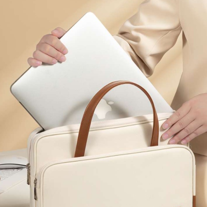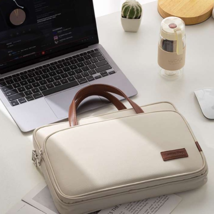 高密度素材採用の防水性に優れたパソコンケース。上品なデザインと機能性を兼ね備えたケースで、ビジネスシーンに最適。
