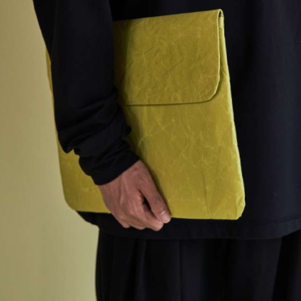 紙のような風合いながら水洗い可能な特殊素材を使用しており、サステナブルな印象を与えます。