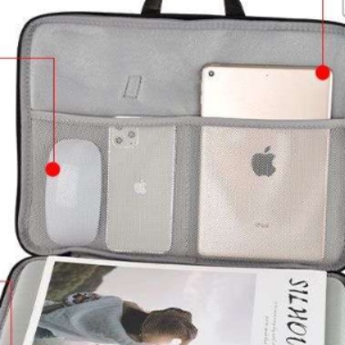 iPadやノートPC、マウスなど必要なアイテムがすっきりと整理できる実用的な仕切り付き構造になっています。
