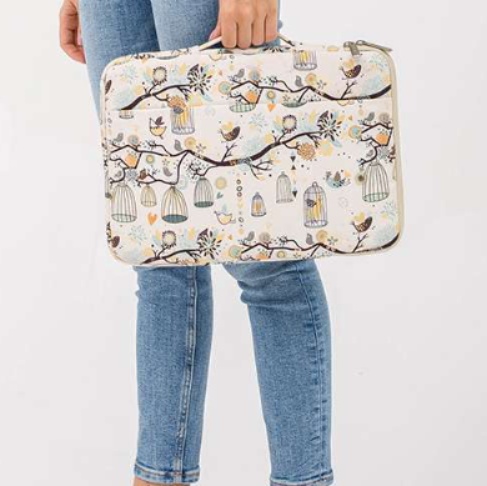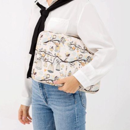 優しい色合いの小鳥と鳥かごの柄が、かわいらしく落ち着いた雰囲気を演出しています。