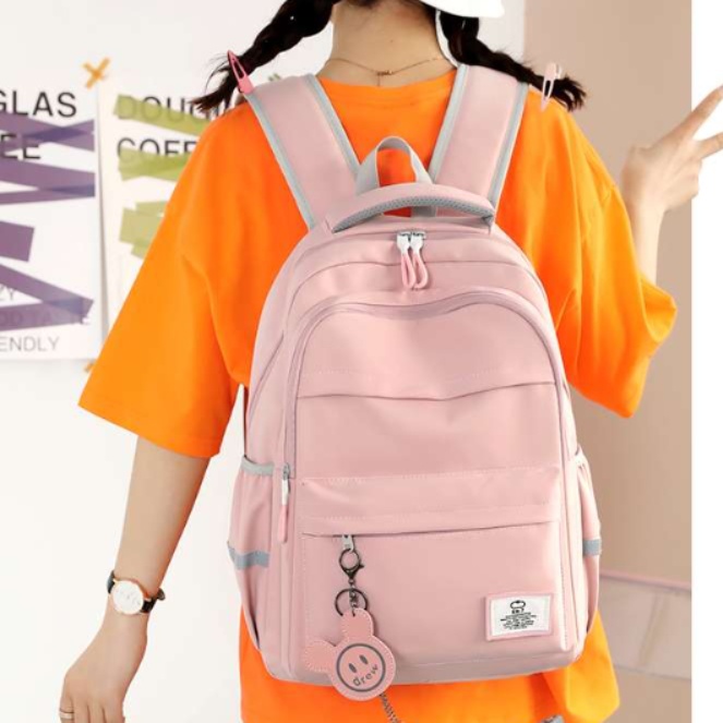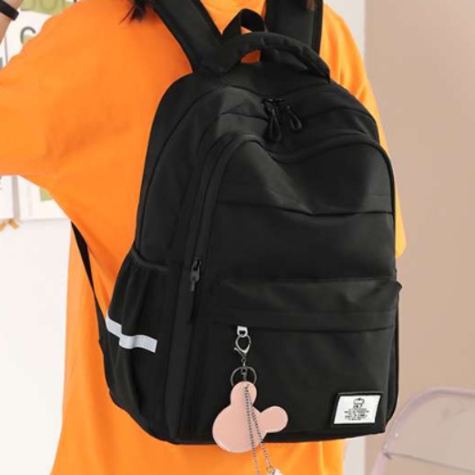 かわいいチャーム付きで、おしゃれなデザインと実用性を兼ね備えたリュック。