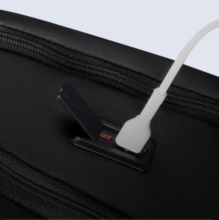 本体側面にUSB充電ポートを搭載し、移動中でもスマートフォンなどの充電が可能な実用的な設計