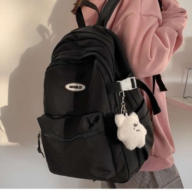 かわいいクマのチャームがアクセントになったリュックで、デイリーユースにおすすめの機能的でキュートなデザイン。