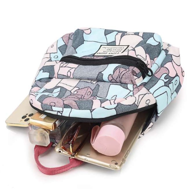 日常使いにぴったりな多機能リュックで、スマートフォンや化粧品なども収納可能です。