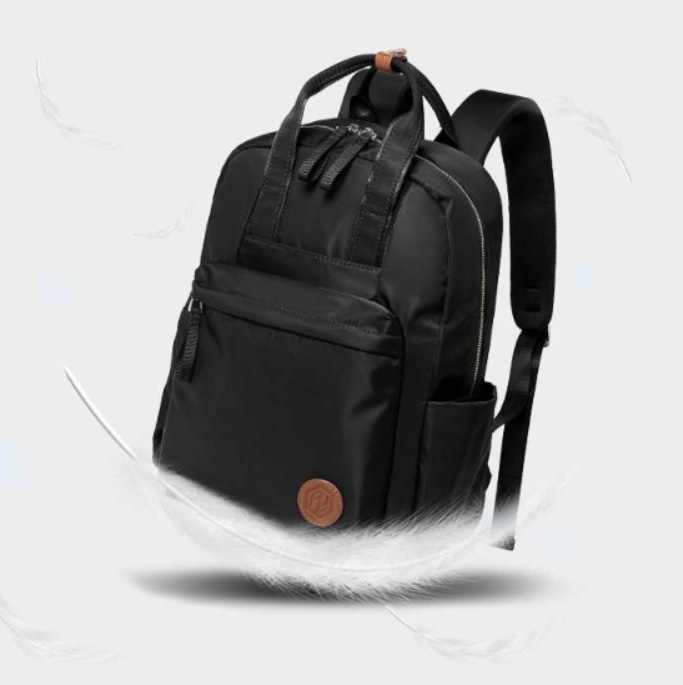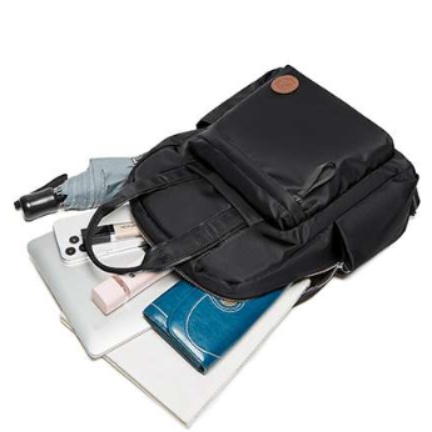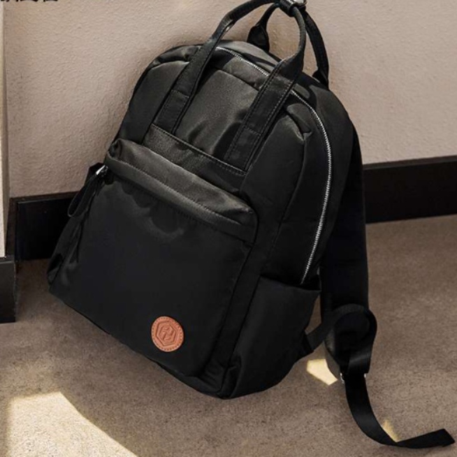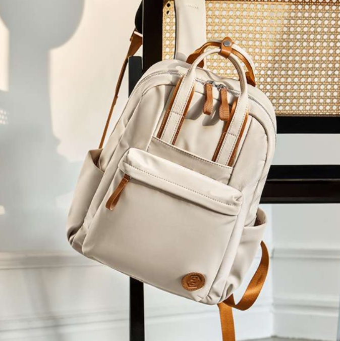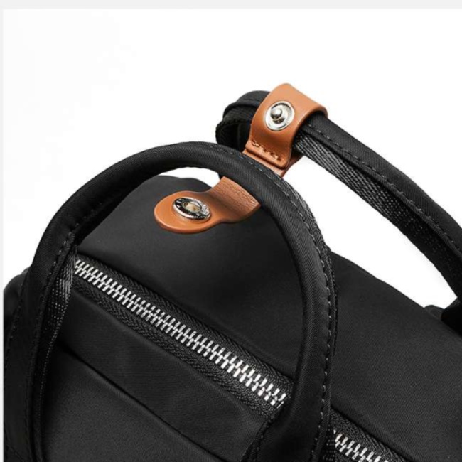丈夫な防水素材を使用し、レザー調の装飾がさりげなく上品な雰囲気を演出します。