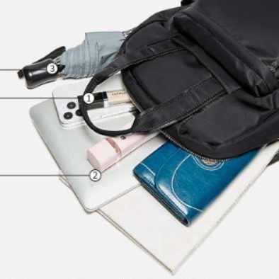 パソコン専用の独立した収納スペースがあり、14インチまでのデバイスを安全に持ち運びできます。