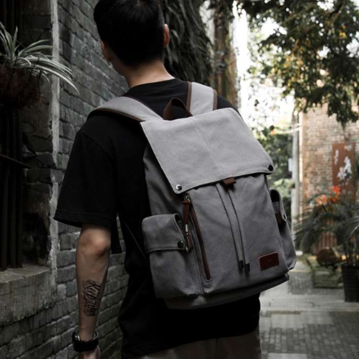 丈夫な帆布生地を使用しており、耐久性が高く長く愛用できる実用的なデザイン