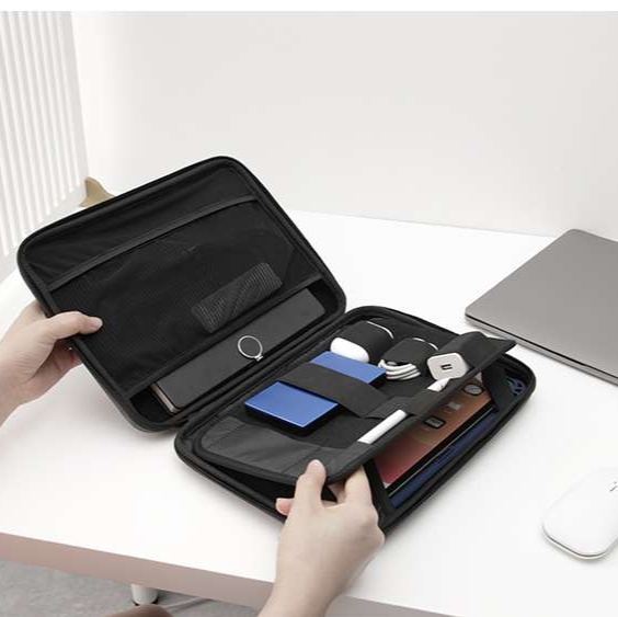 大切なパソコンやタブレットをしっかり守る、衝撃吸収素材を使用した取っ手付きケース。ジッパー開閉式で、機器の出し入れがスムーズ。軽量設計により持ち運びも楽々。内部にはクッション性があり、傷や衝撃から大切なデバイスを安心して守ります。デザイン性も兼ね備えたこのケースは、日常使いに最適です。