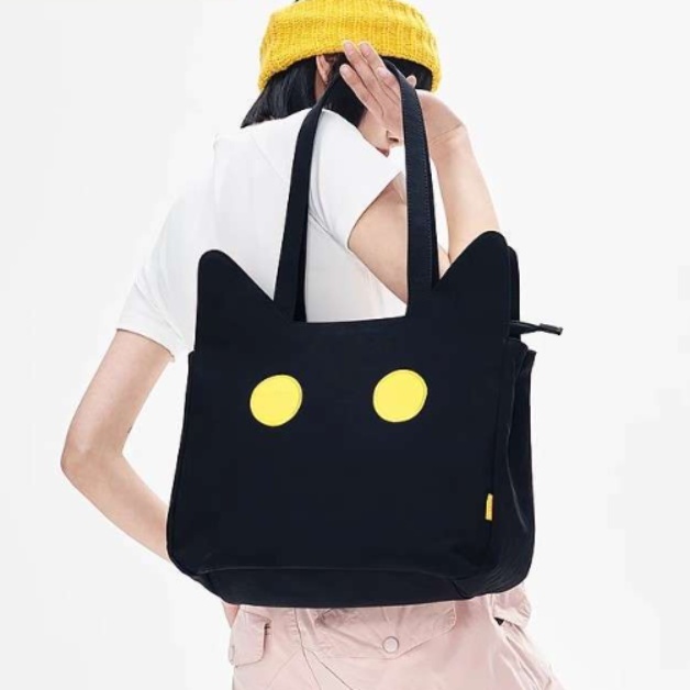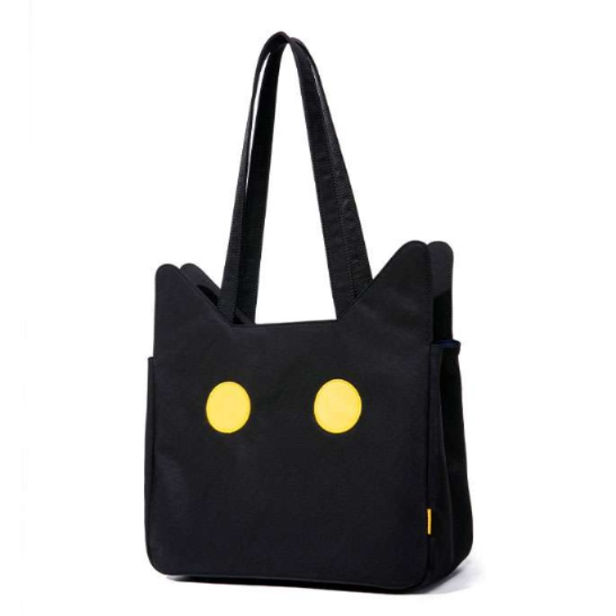 愛らしいネコの目を模した特徴的なトートバッグ兼パソコンケースです。