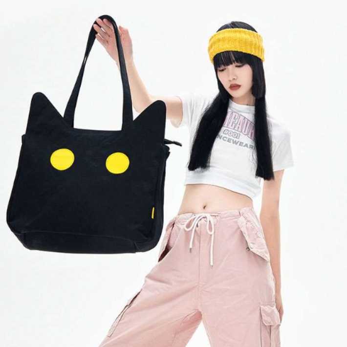シンプルなデザインに猫の耳と目をモチーフにした可愛らしいデザインで、普段使いからちょっとしたお出かけまで幅広く使える