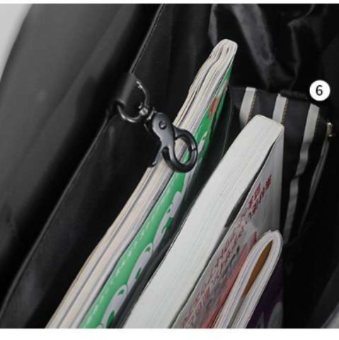 内部には複数の仕切りポケットがあり、書類やデバイスを整理して収納できる実用的な構造になっています。