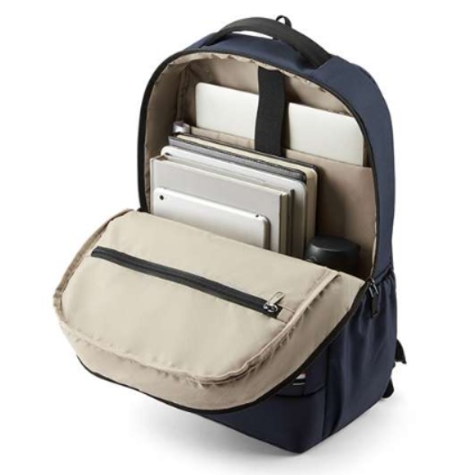 | 特徴 | 23L大容量、17インチPC収納可、内部多層ポケット、内側ファスナーポケット、バッグ開口が大きく取り出しやすい、背面スーツケース固定ベルト付き |