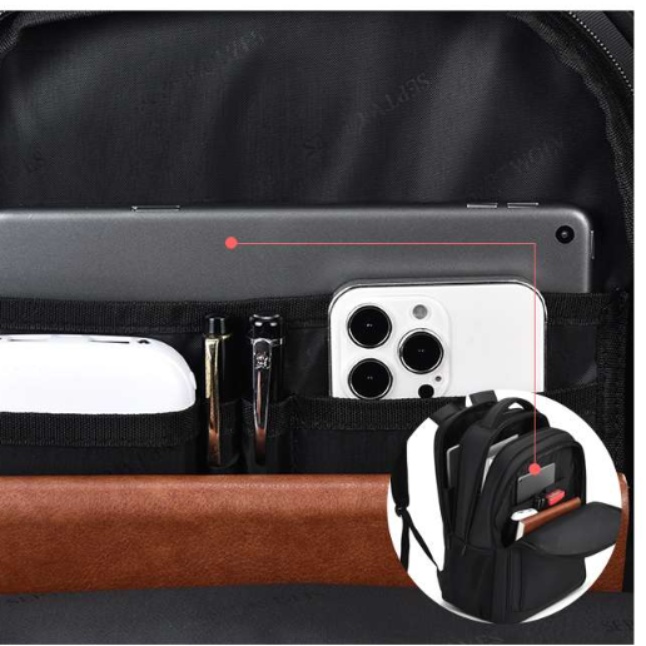 タブレットやスマートフォン、文具などを整理して収納できる便利なポケット構造で、ビジネスシーンでの使用に最適です。