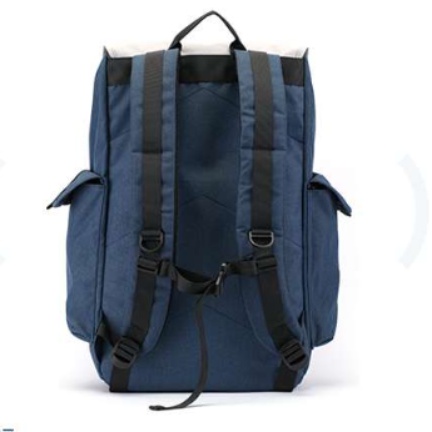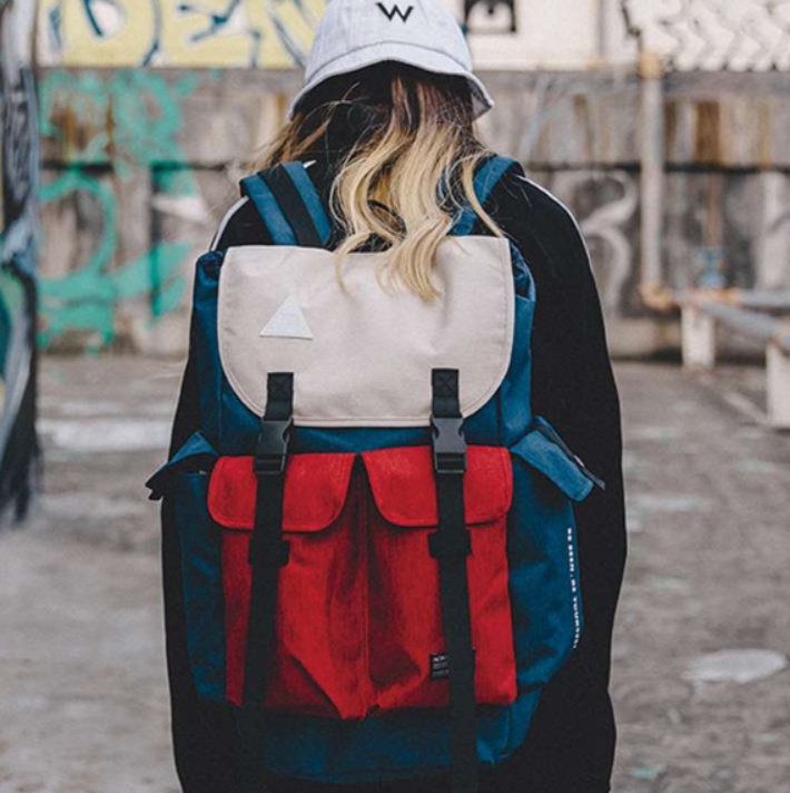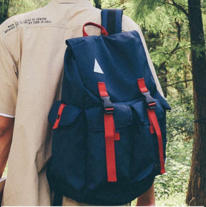 バックパックの前面にあるダブルバックルが実用的で、かつスタイリッシュな印象を与えます。