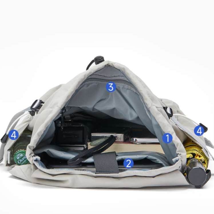 | 特徴 | 軽量、防滴仕様、柔らかな手触りの生地、荷物が整理しやすい多ポケット設計 |