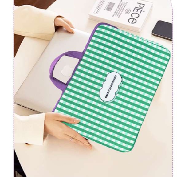 爽やかな縞模様が印象的なMacBookケース。衝撃から大切なパソコンをしっかり保護する機能を備え、日常使いにぴったりなアイテム。持ち手付きで通勤や旅行、学校などさまざまなシーンで活躍し、スタイリッシュなデザインが個性を引き立てます。あなたのライフスタイルに寄り添う、おしゃれなパソコンケース。