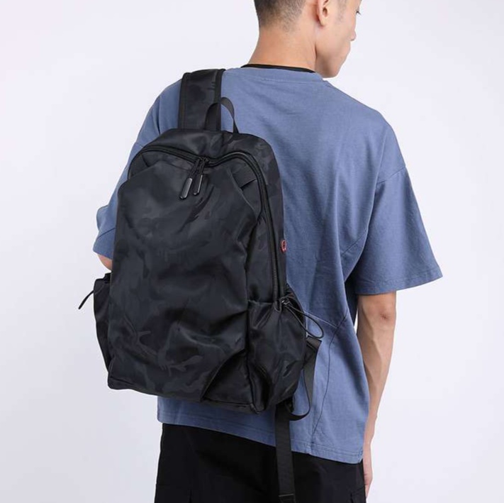 迷彩柄の大容量パソコンリュック。パソコンケースとしての機能性と普段使いできるリュックのデザイン性を兼ね備えています。