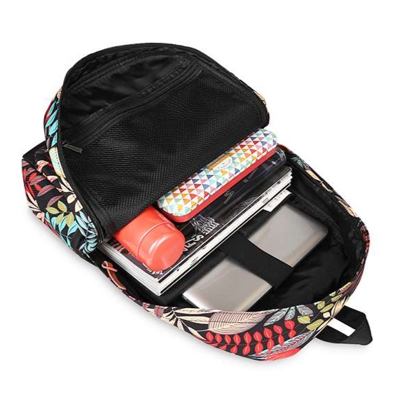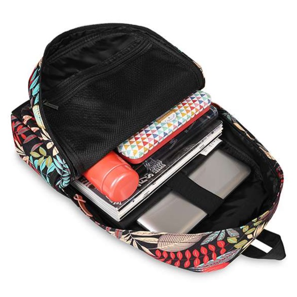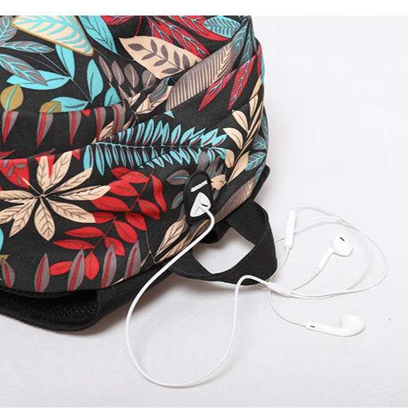 華やかな葉っぱ柄が目を引くパソコンリュック。