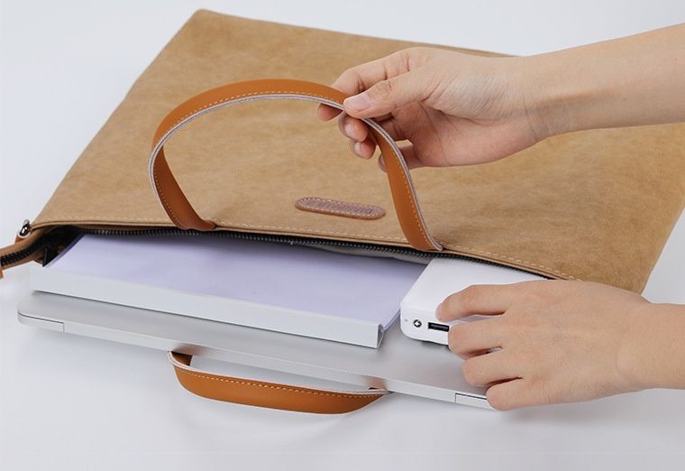 環境に配慮した水洗牛皮紙素材を使用したビジネス向けパソコンケースです。