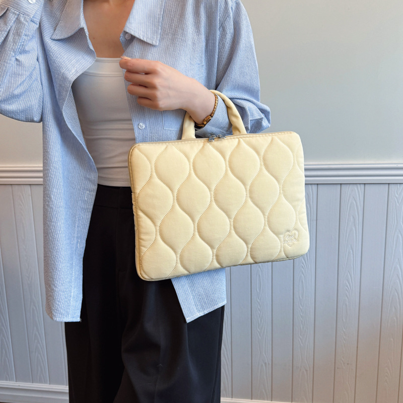 優雅な曲線を描くキルティングステッチが美しいおしゃれなパソコンケースです。