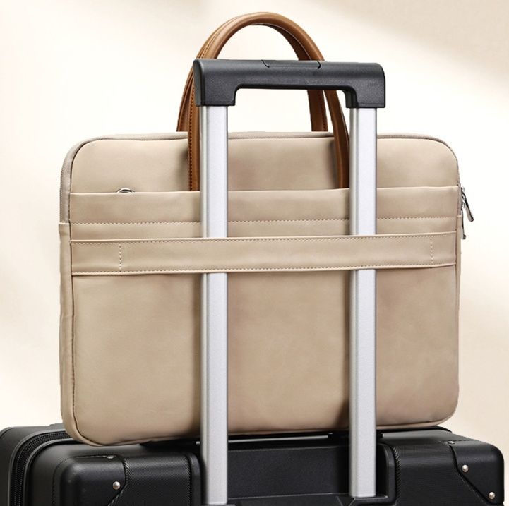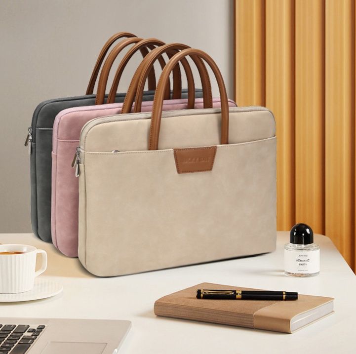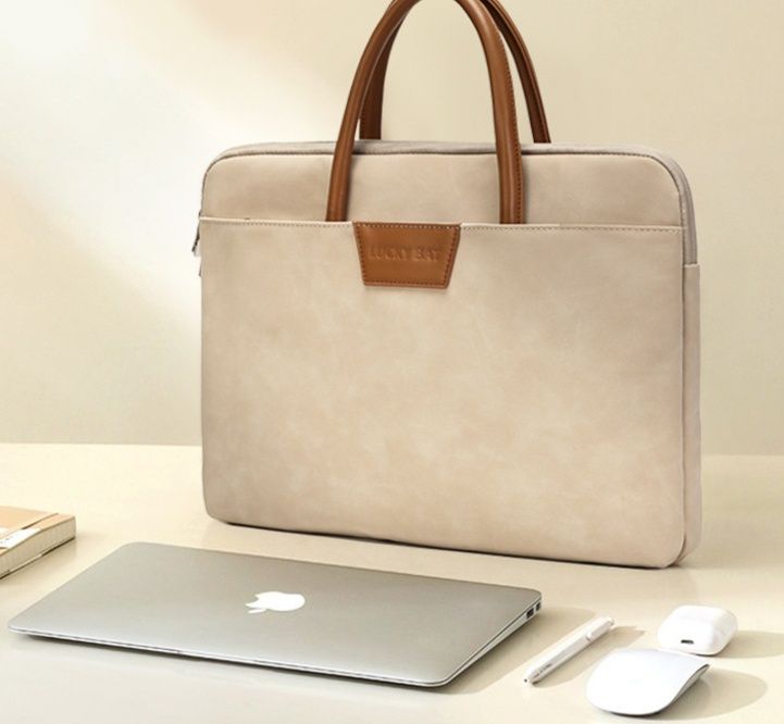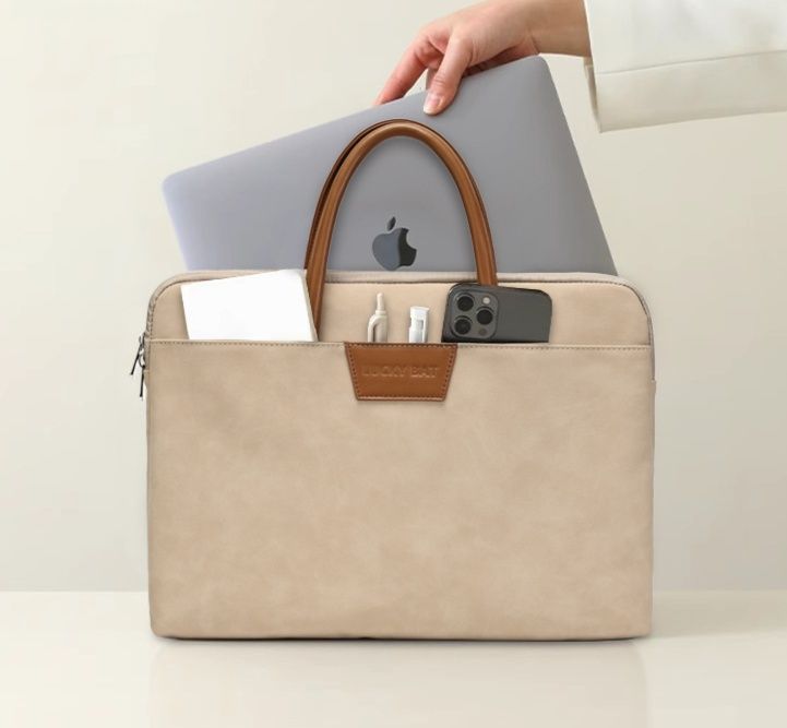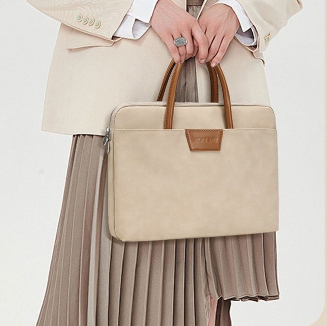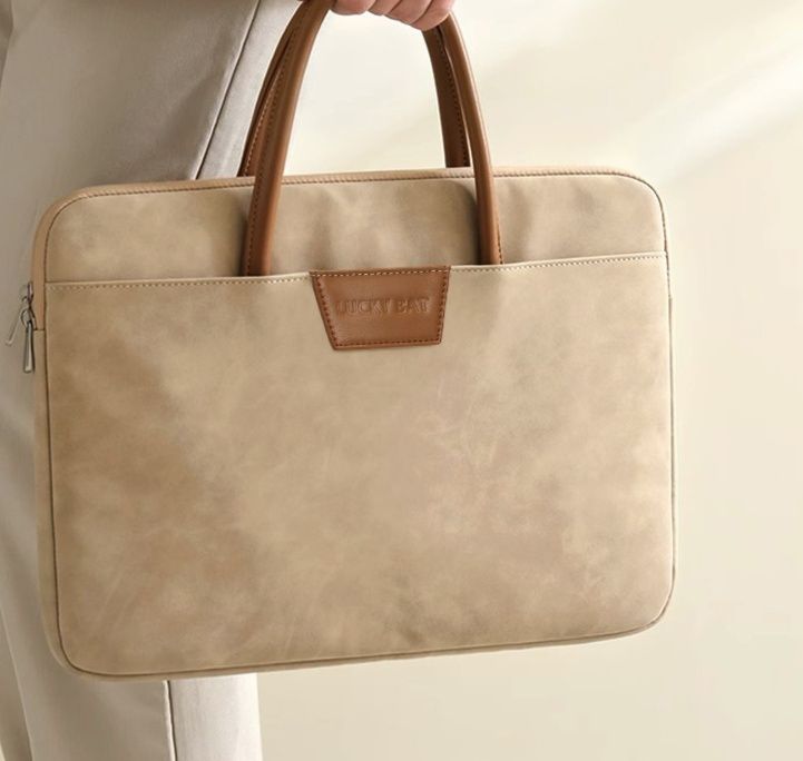 -10%上質な素材感と洗練されたデザインが魅力のおしゃれなパソコンケースです。 取っ手部分と本体の異素材コンビネーションが高級感を演出し、ビジネスシーンにも対応できる落ち着いた雰囲気が特徴です。 前面には小物を収納できるポケット付きで、携帯電話や充電器などをすっきり整理できます。 ファスナー開閉式で中身をしっかり保護しながら、トートバッグのように持ち運べる実用性とデザイン性を兼ね備えた一品です。
